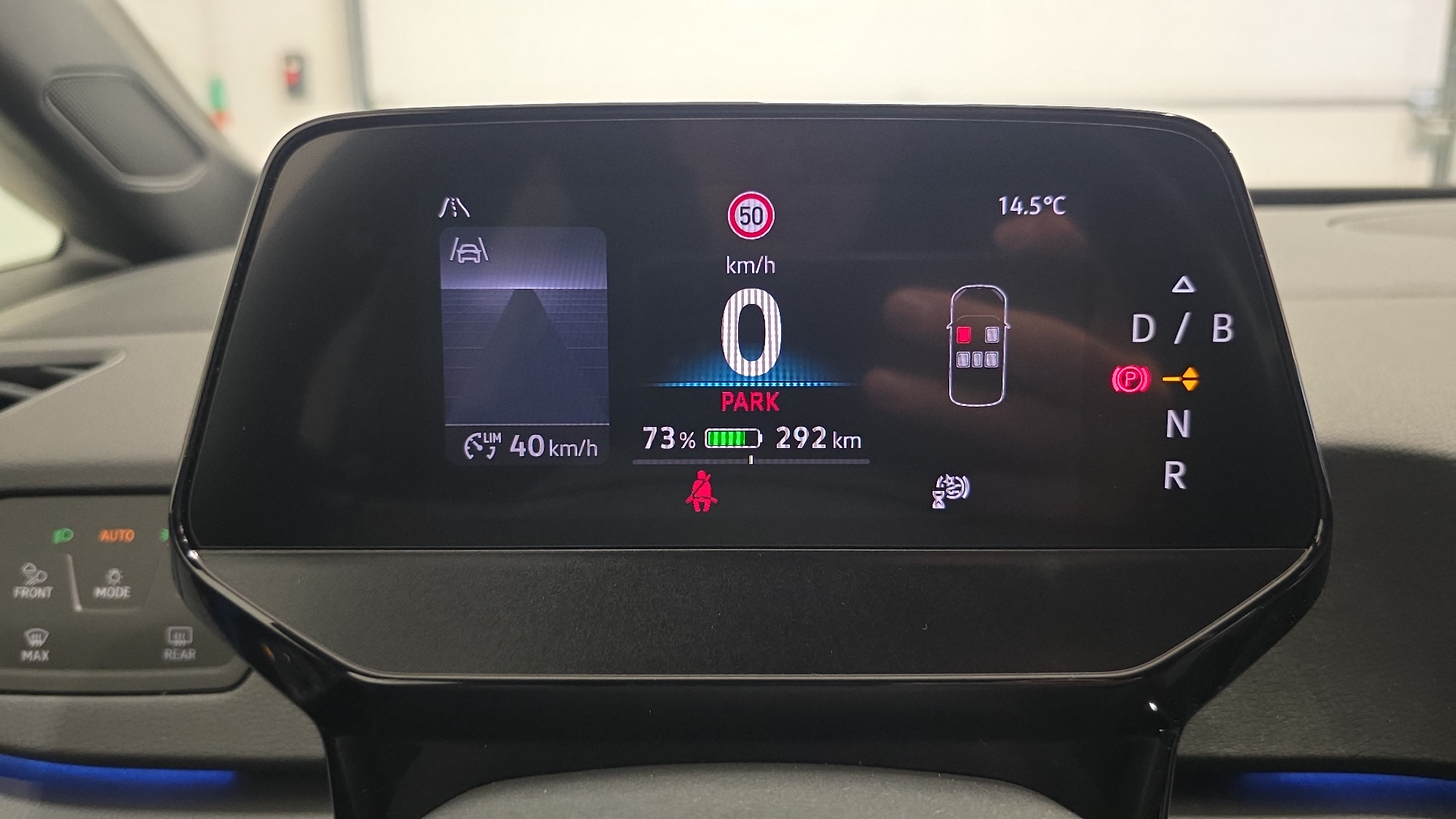- la récupération d'énergie au freinage est en mode normal. En position (B)