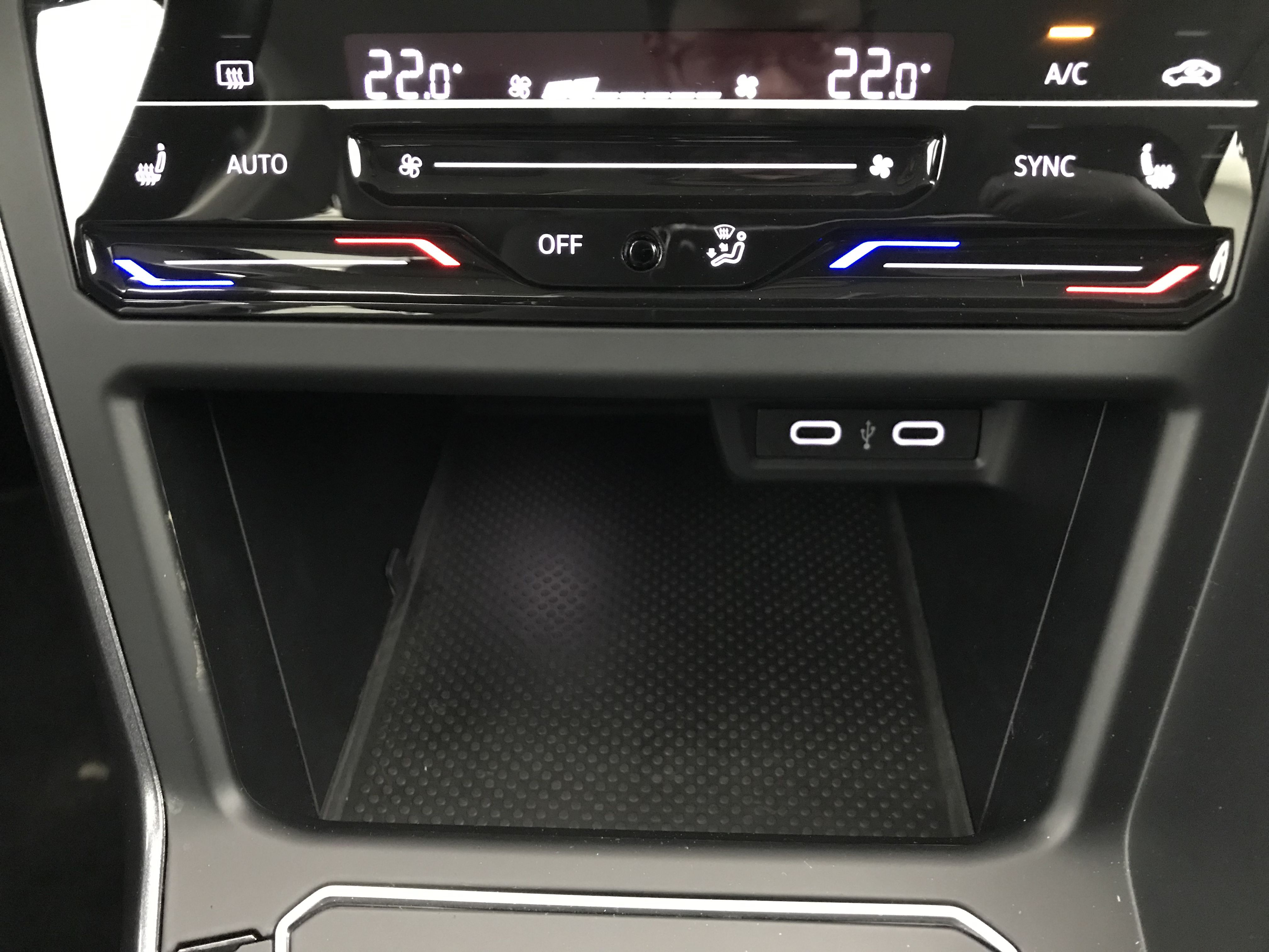 - Accoudoir central AV réglable en longueur avec compartiment de rangement et 2 ports USB-C de recharge AR