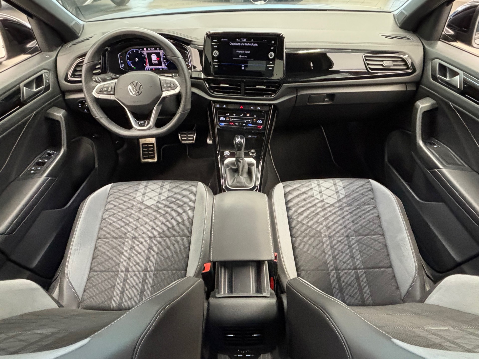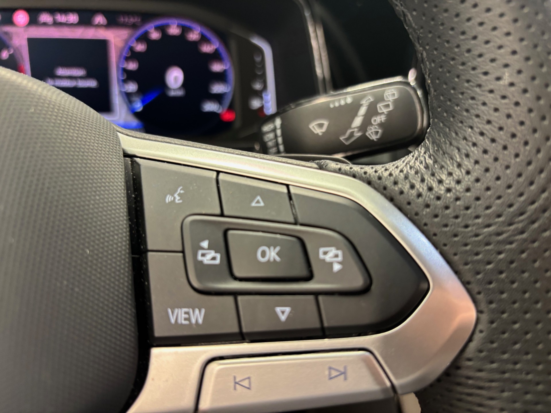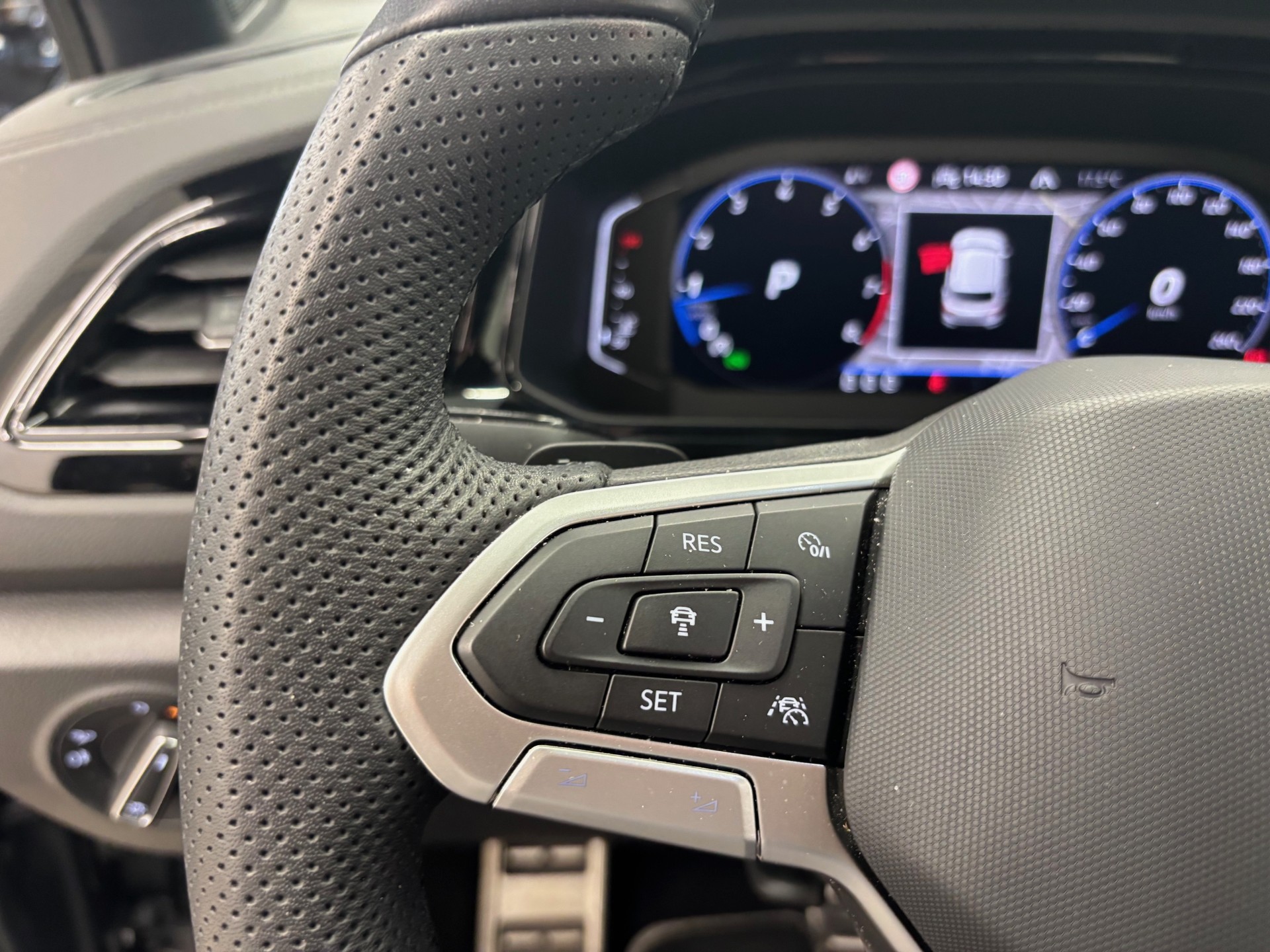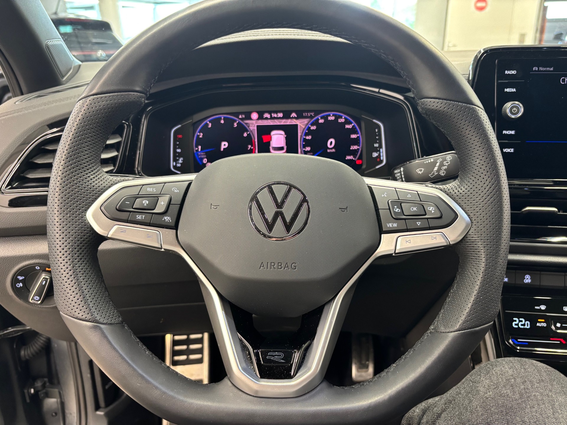 - Volant sport multifonction à touches physiques en cuir et logo R-Line et capacitif