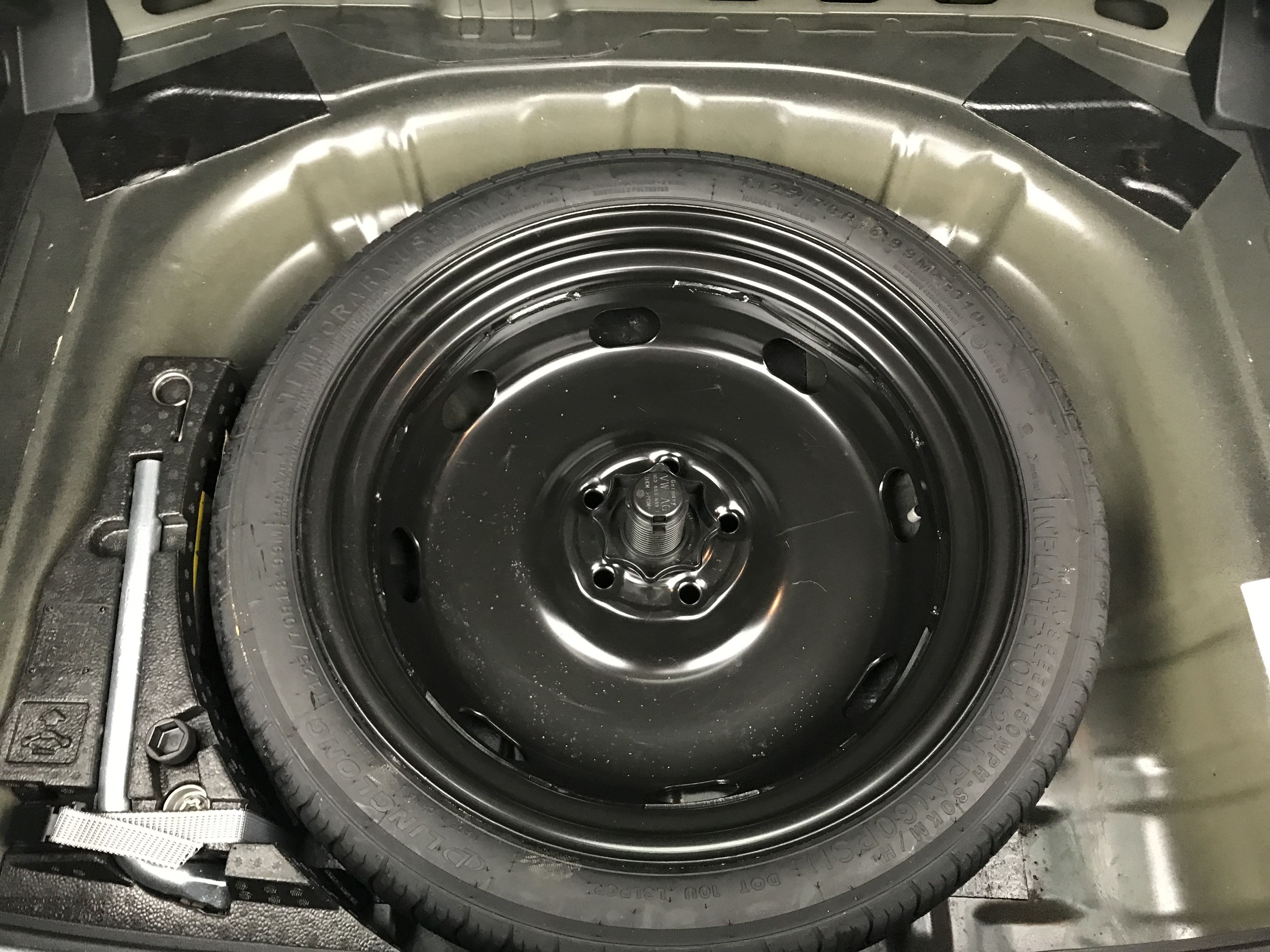 - Roue de secours à encombrement réduit avec cric (vitesse limitée à 80 km/h) Remplace le kit de dépannage