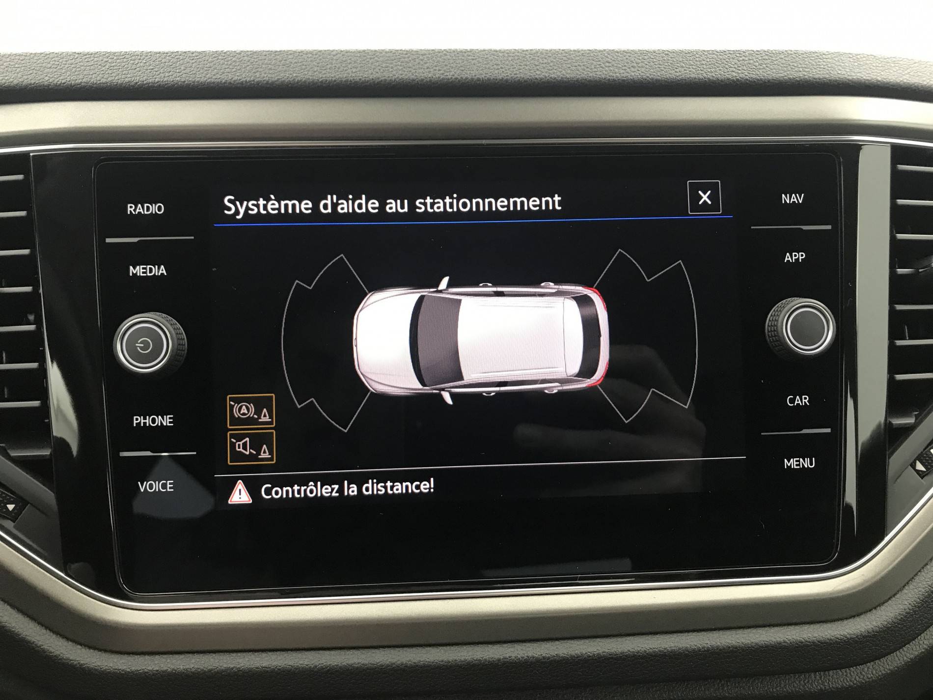 - Aide au stationnement AV/AR avec signaux sonores et visualisation de la distance des obstacles sur l'écran