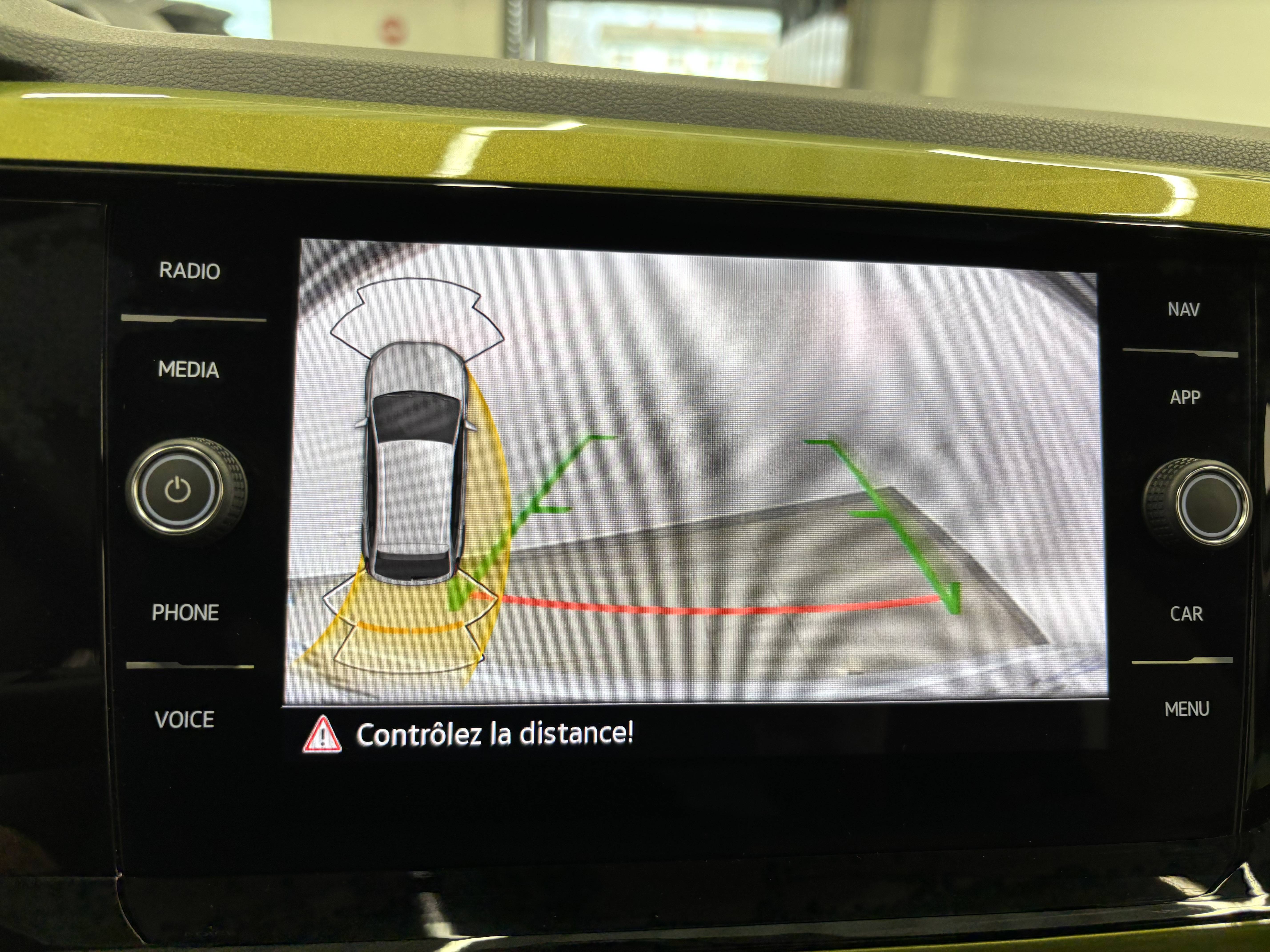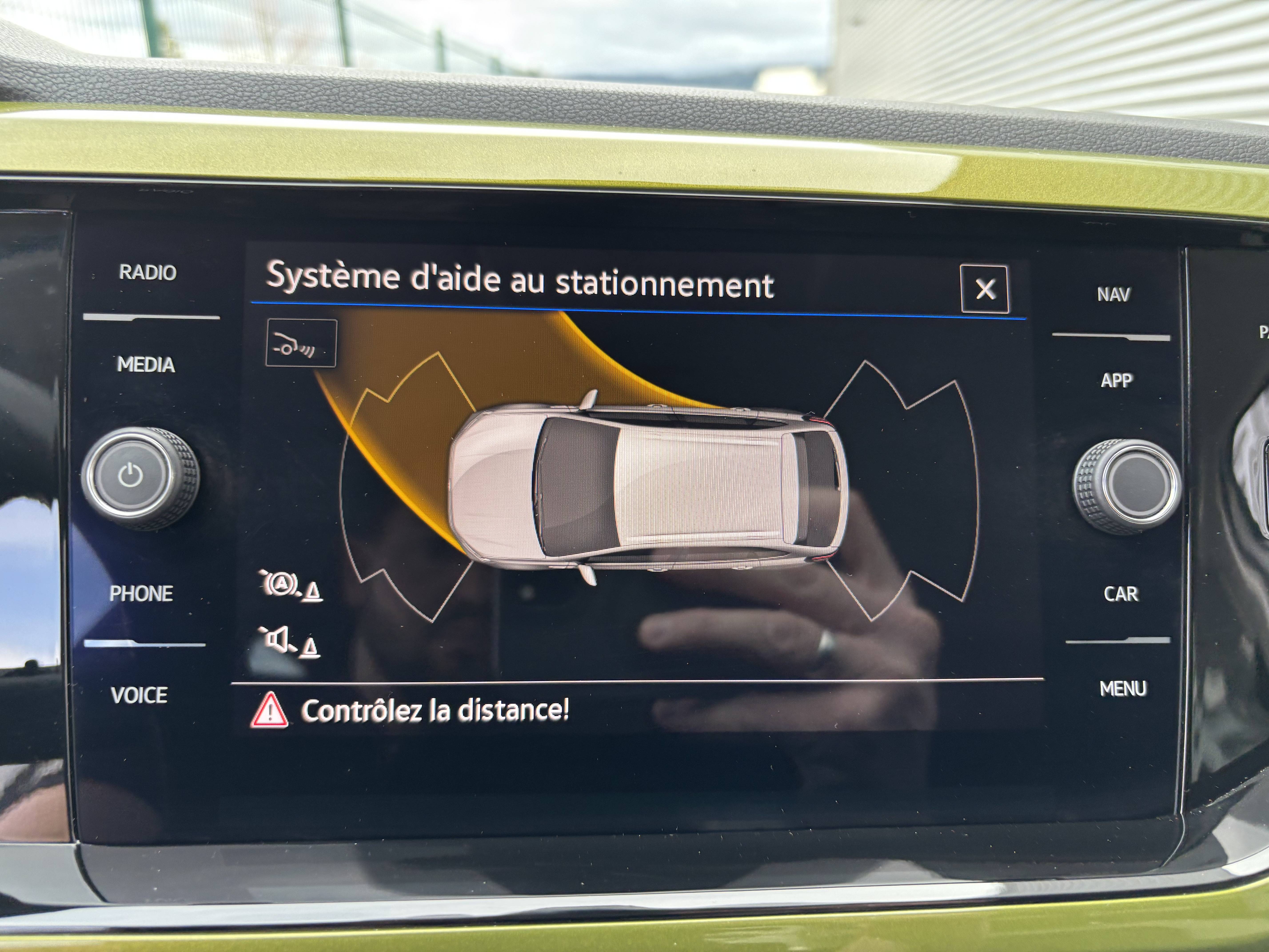 - elle affiche des indications visuelles sur l'écran central pour faciliter les manoeuvres de recul et de stationnement