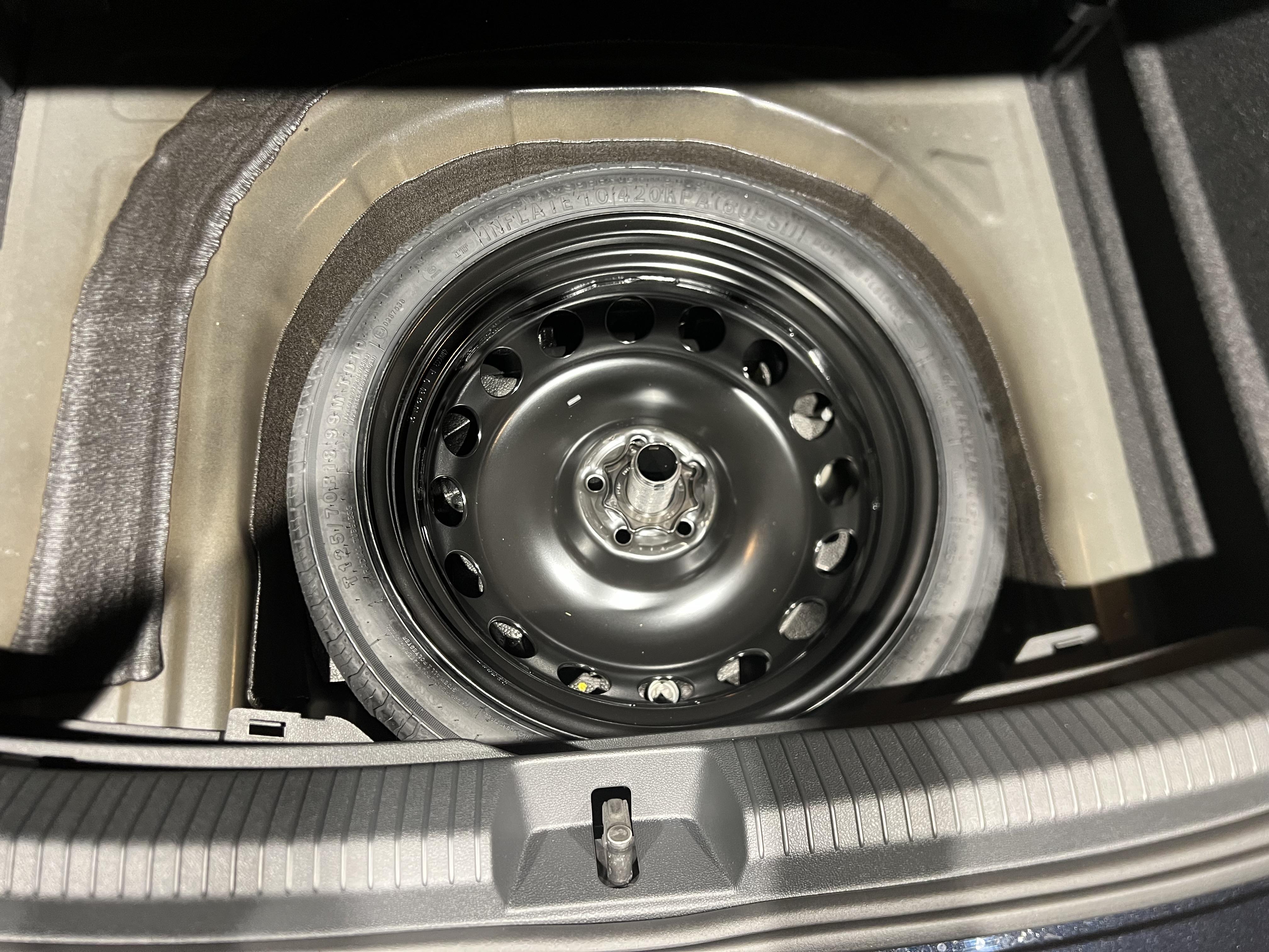 - Roue de secours à encombrement réduit, outillage de bord et cric (vitesse limitée à 80 km/h)