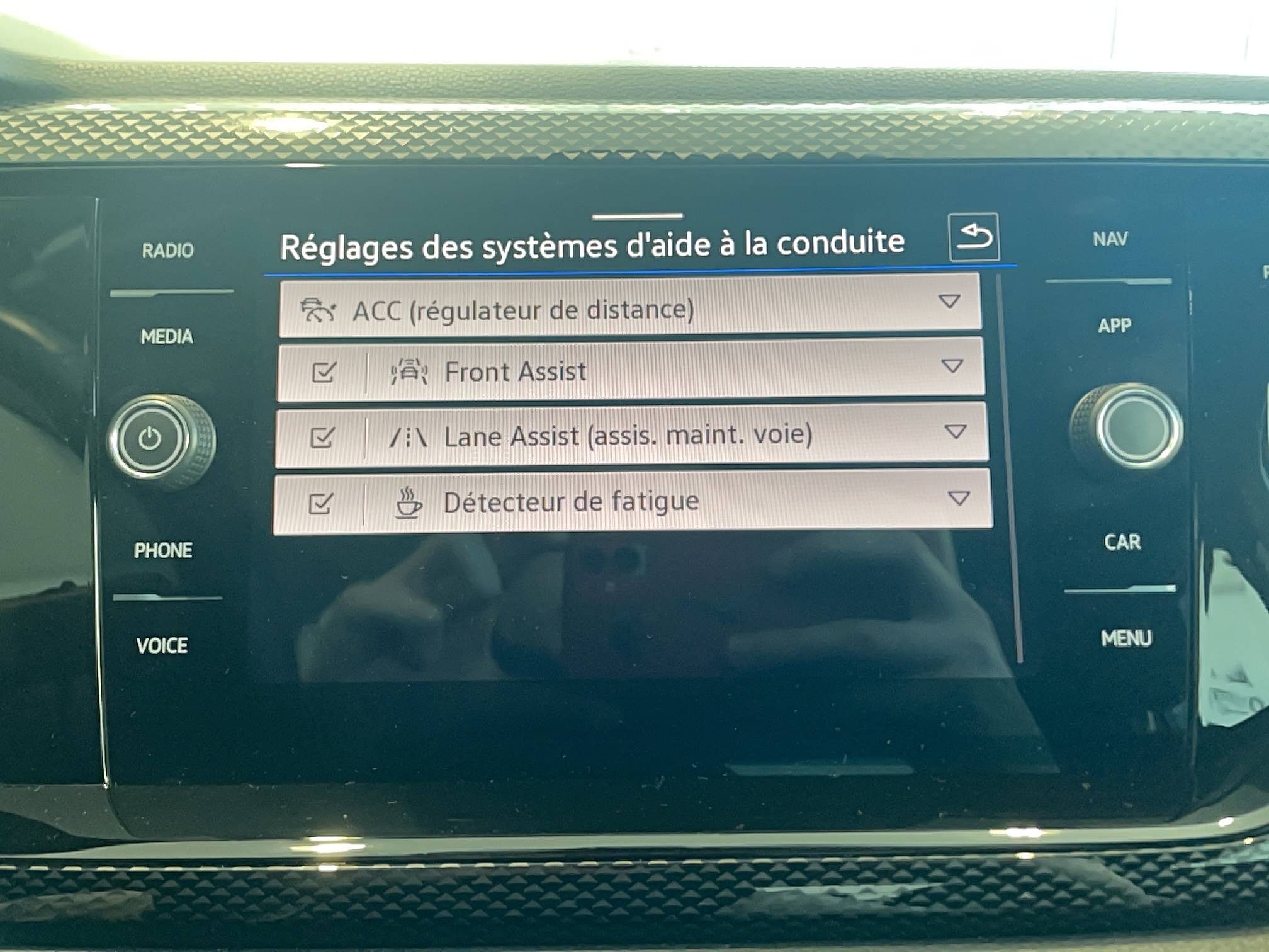 - Rear view: - pllus qu'une caméra de recul, elle affiche des indications visuelles sur l'écran central pour faciliter les manoeuvres de recul et de stationnement
