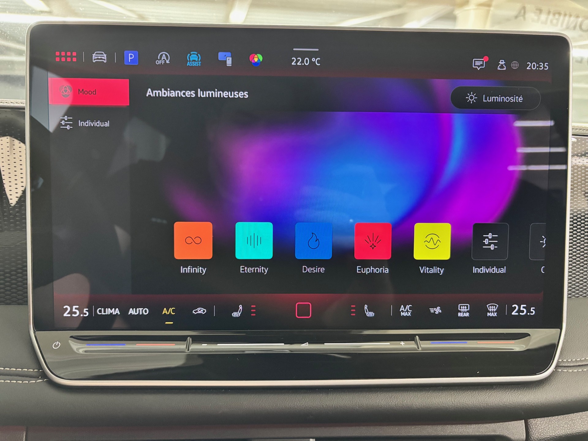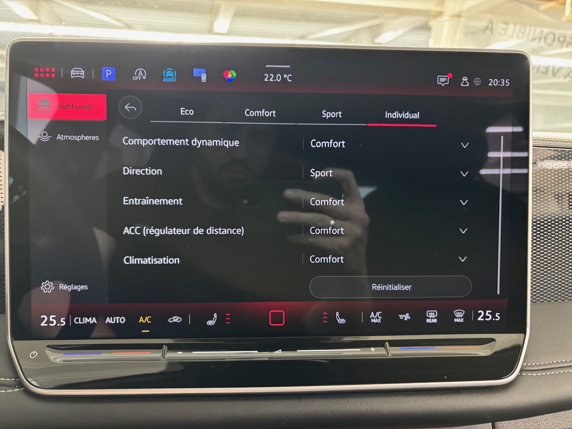 - le profil de conduite ainsi que les "Atmosphères" - Appuyer sur le sélecteur pour afficher les profils de conduite