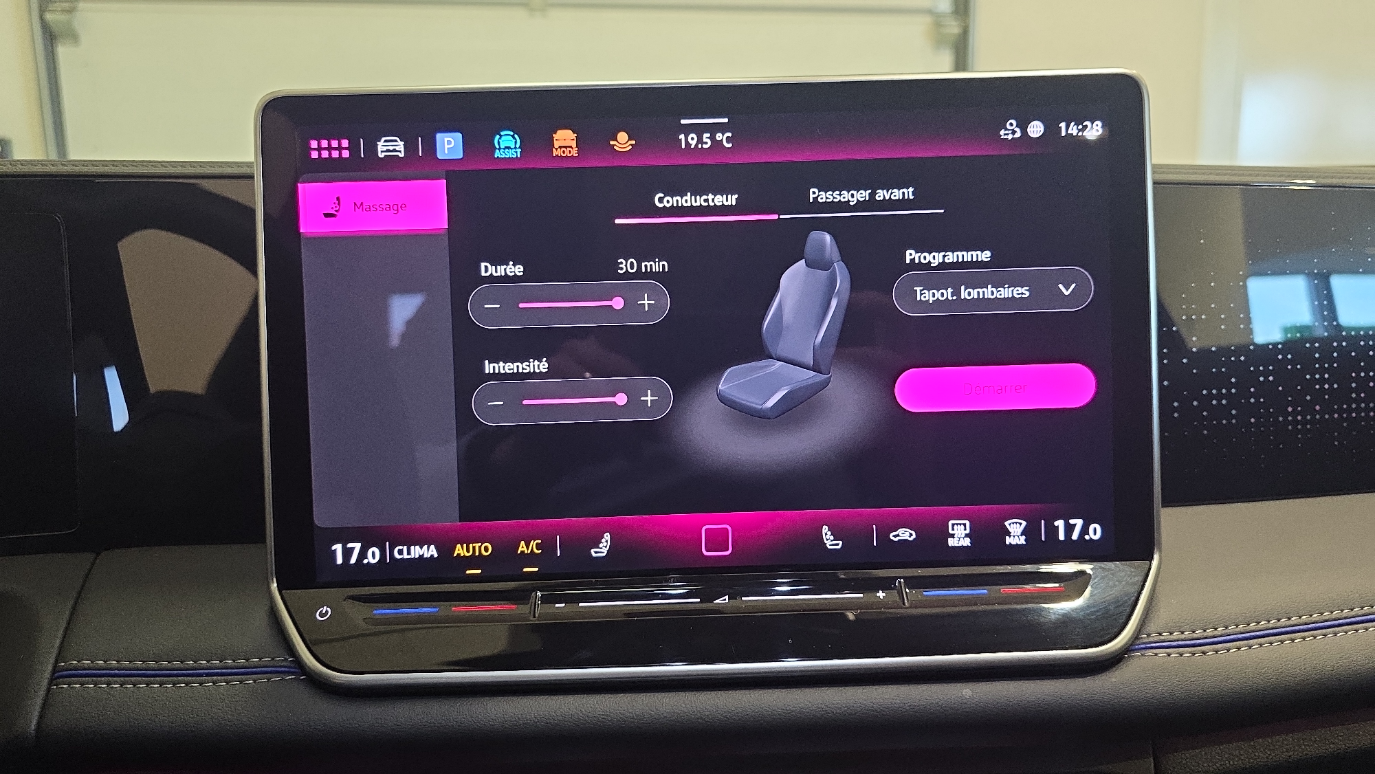 - Sièges AV massant avec fonction massage et fonction de massage pneumatique par trois points de pression