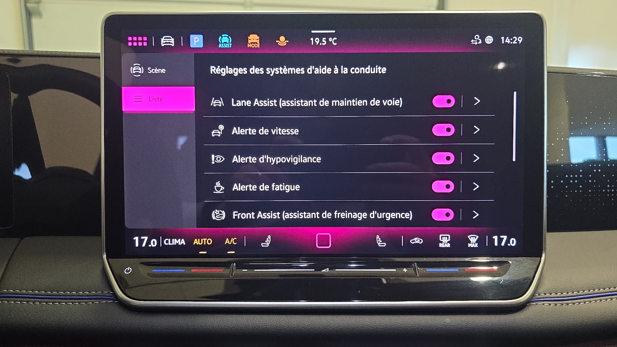 - Assistant de maintien sur la voie Lane Assist