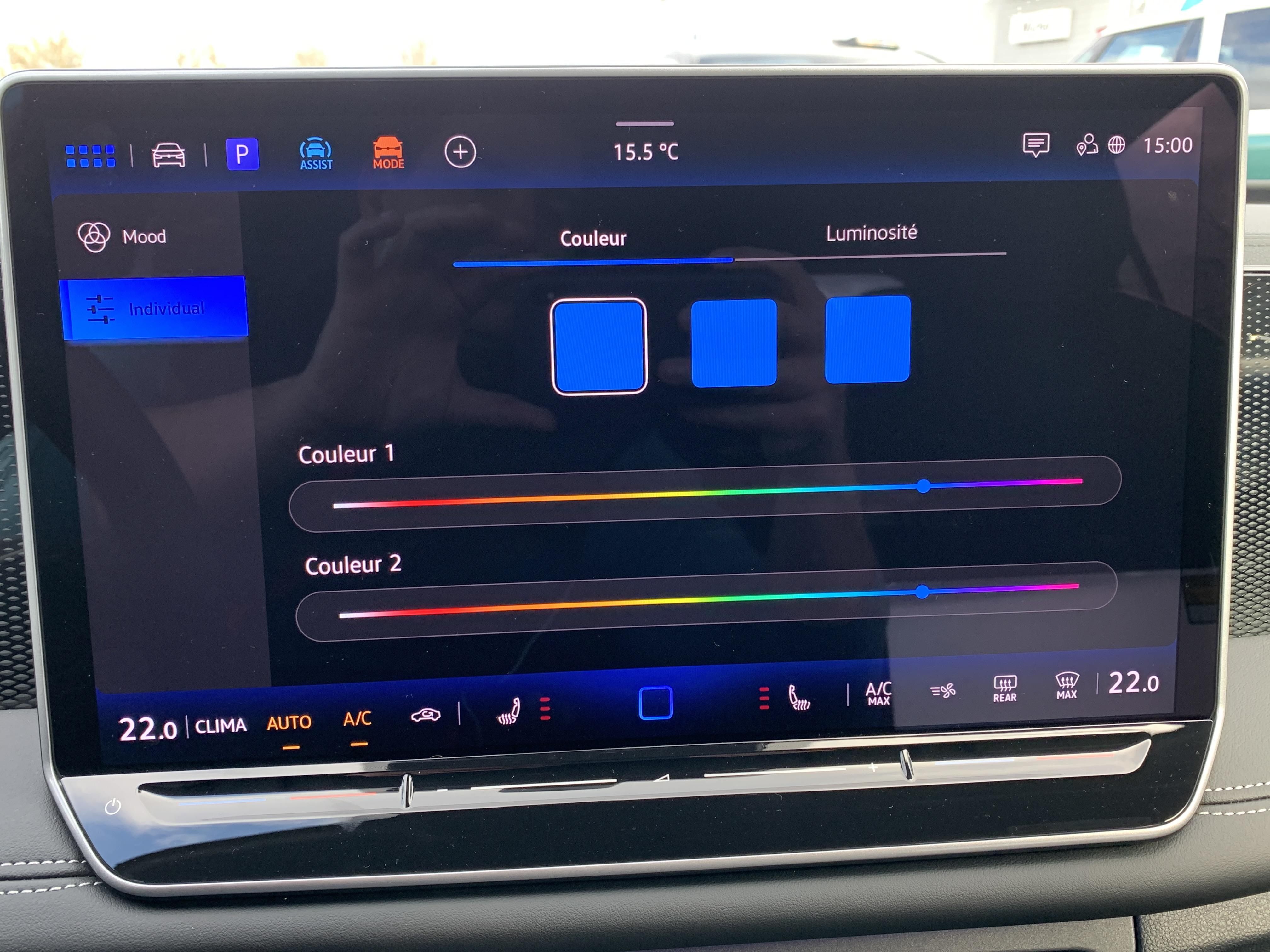 - le profil de conduite ainsi que les "Atmosphères" - Appuyer sur le sélecteur pour afficher les profils de conduite