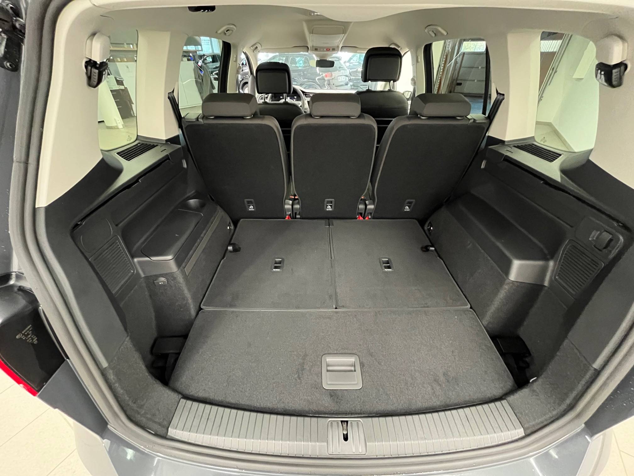- Accoudoir central AV réglable avec compartiment de rangement, porte-gobelet intégré, et prise 12 V pour les passagers AR