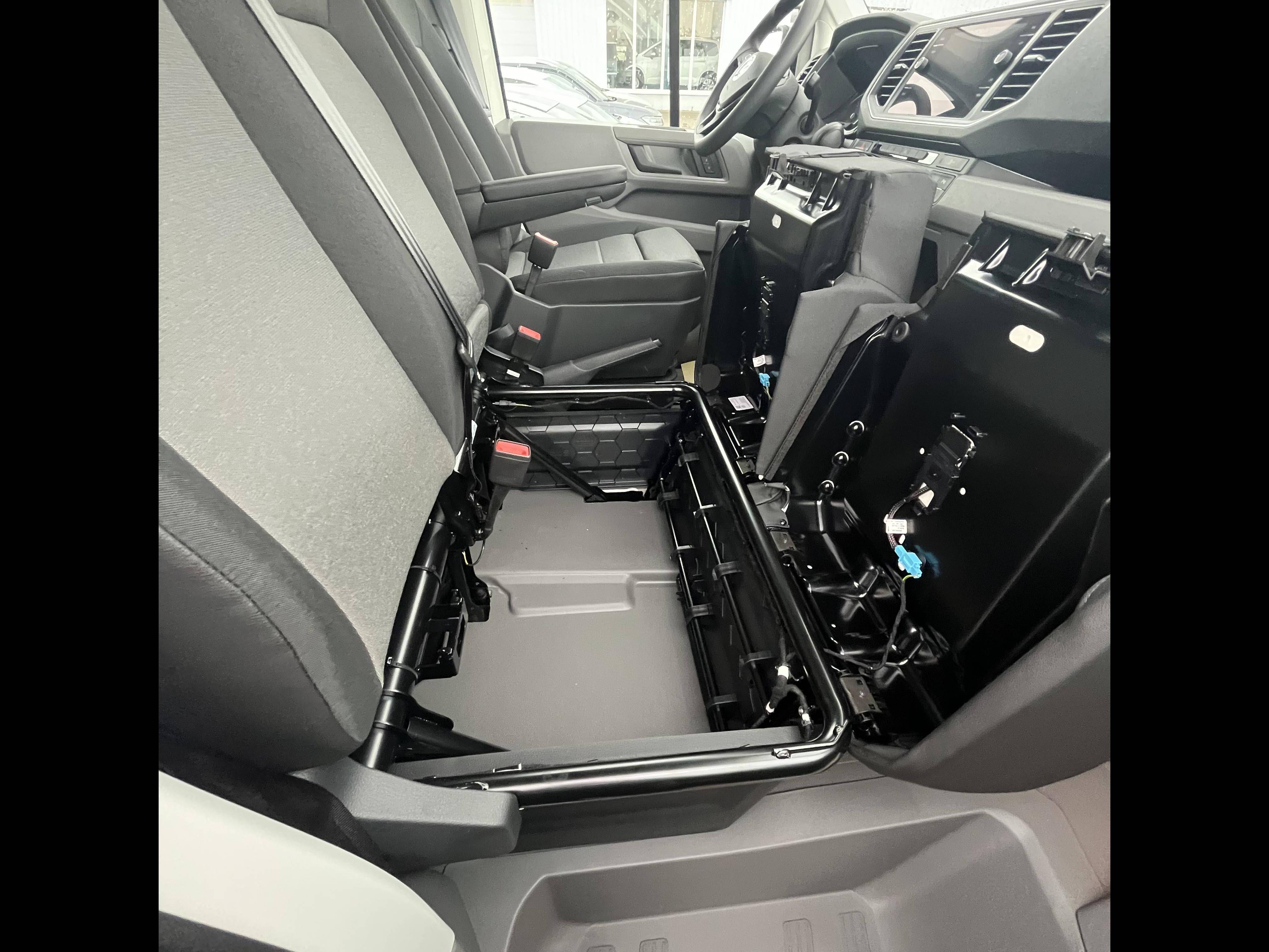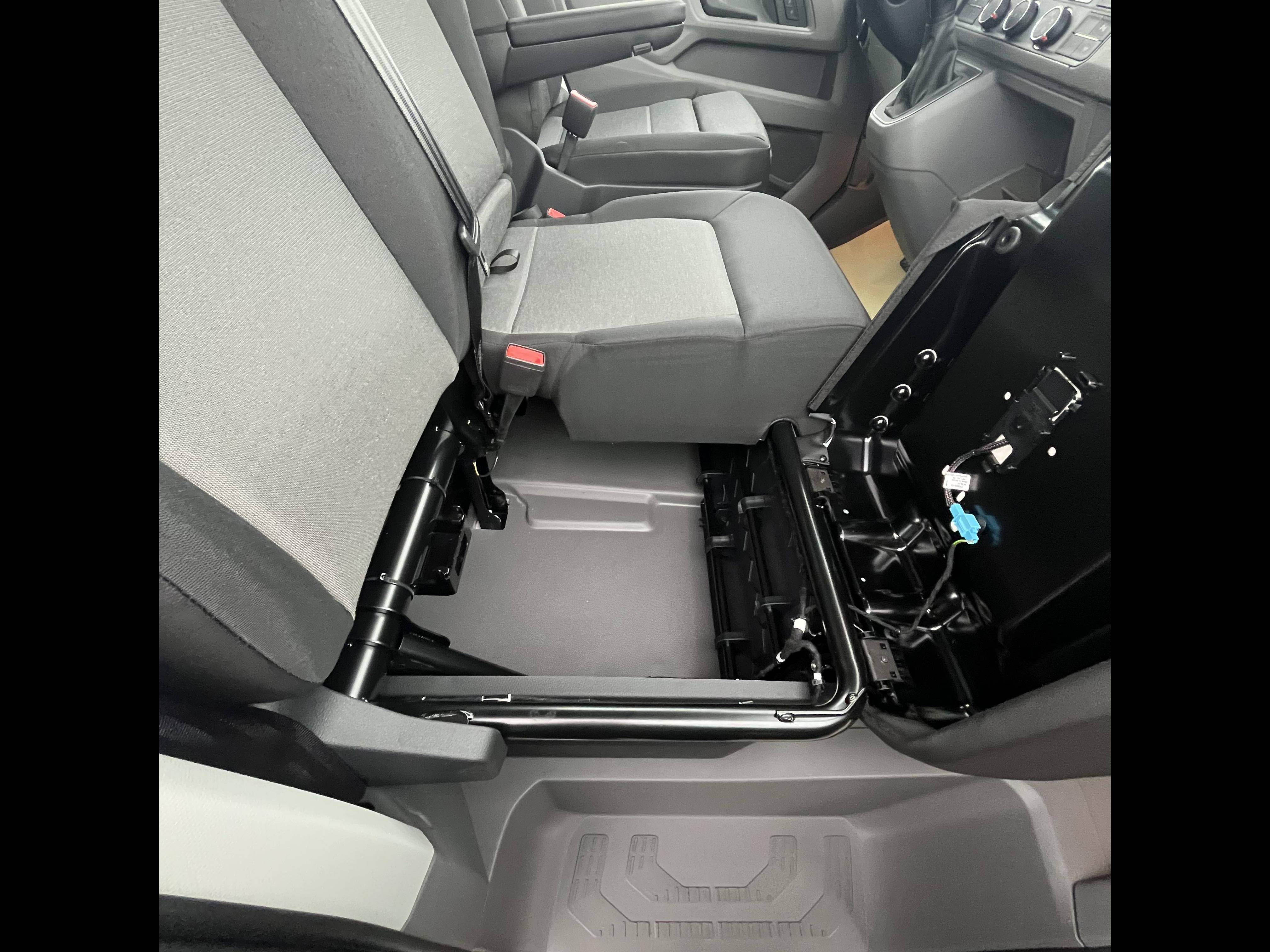 - Banquette double pour 2 passagers avec grand espace de rangement sous les assises relevables séparément, d'une table au dos de la place du milieu (rabattable) avec porte-gobelet et porte-stylo